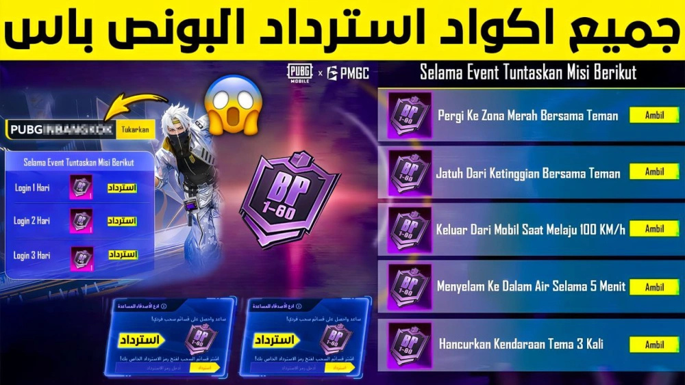 جميع أكواد استرداد البونص باس الجديد في PUBG Mo...
